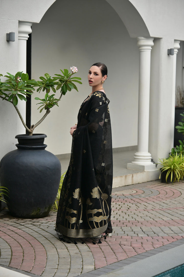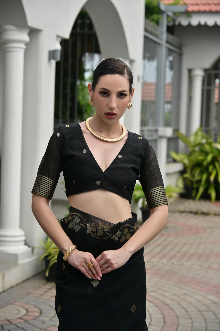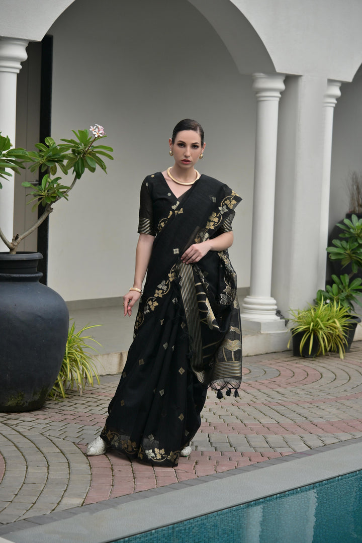 Premium Linen Silk Saree - Black