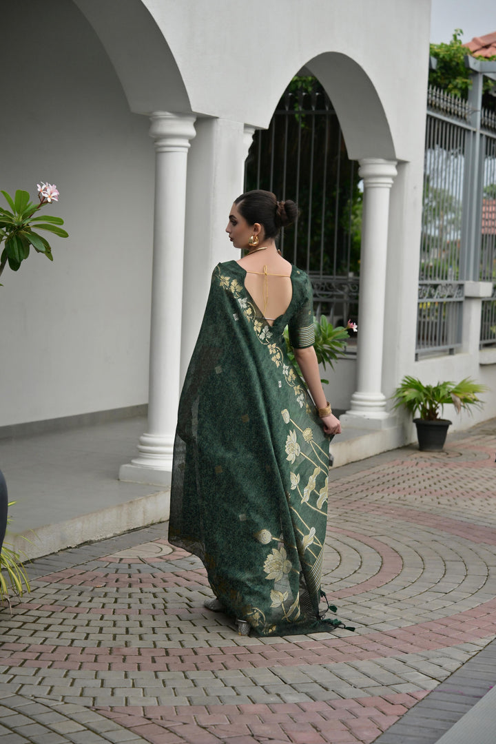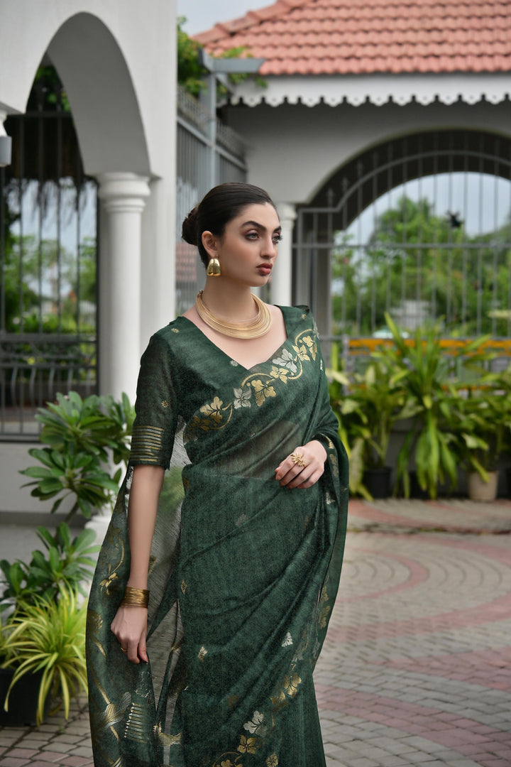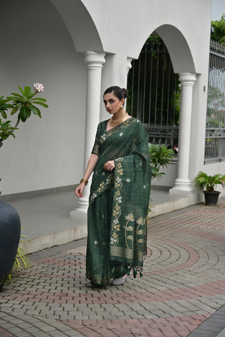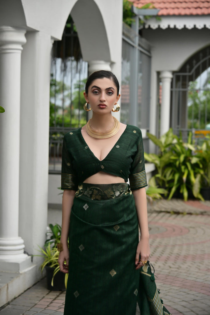 Premium Linen Silk Saree - Green