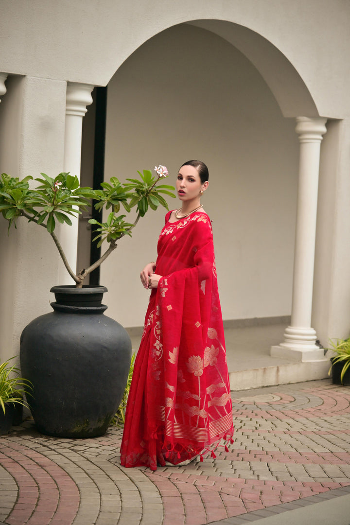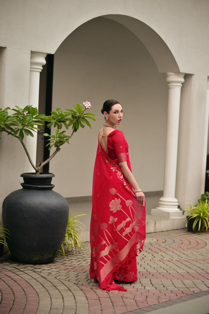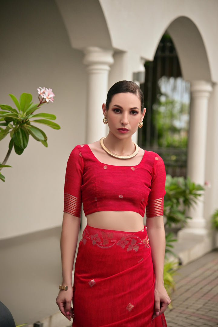 Premium Linen Silk Saree - Red