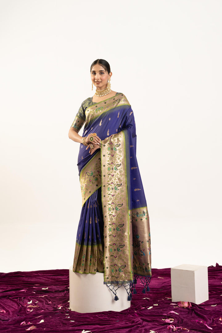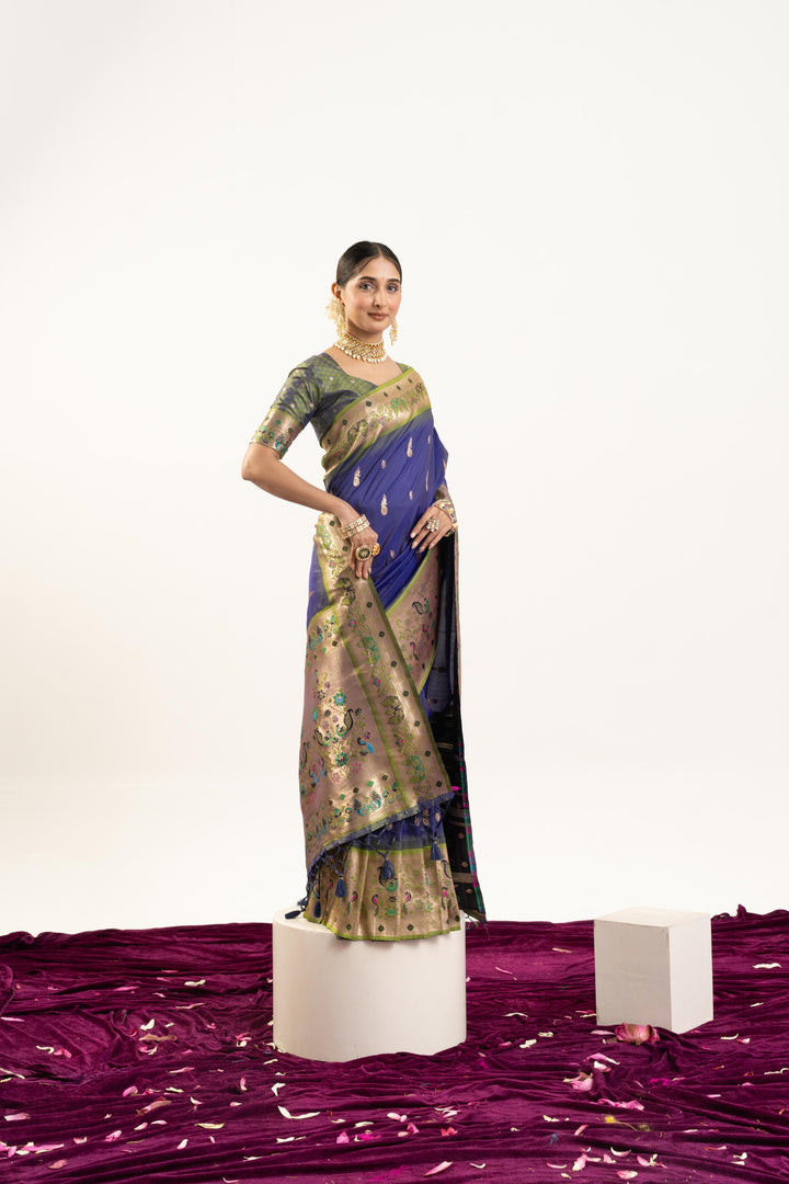 Premium Soft Muga Cotton Paithani Saree 101 - Blue