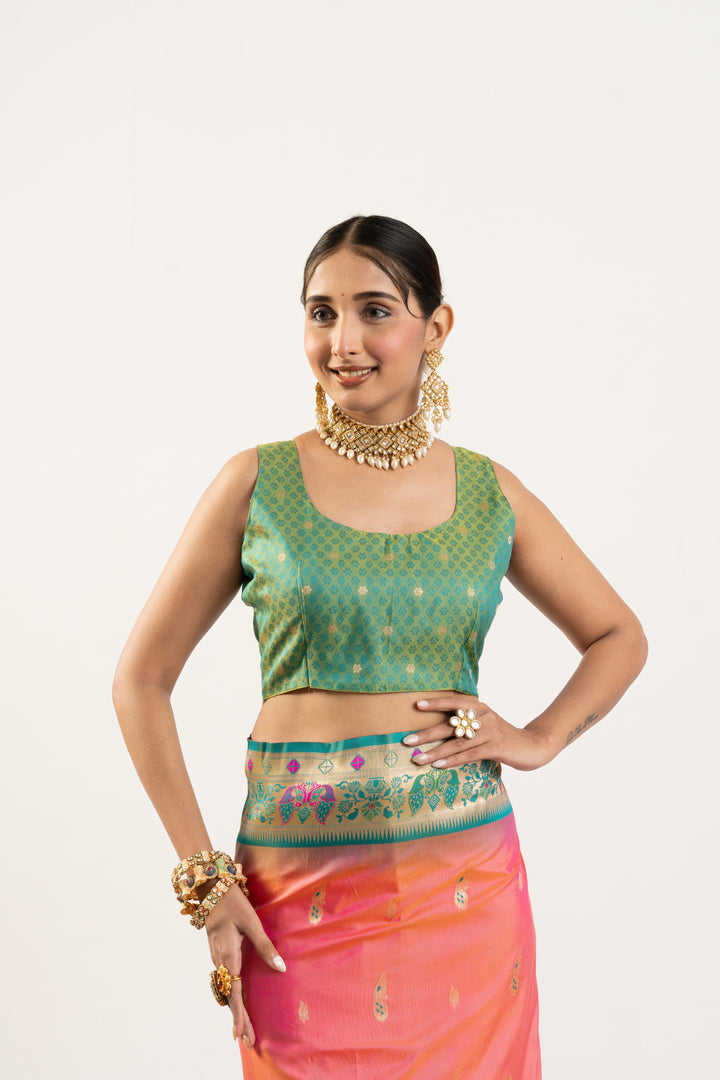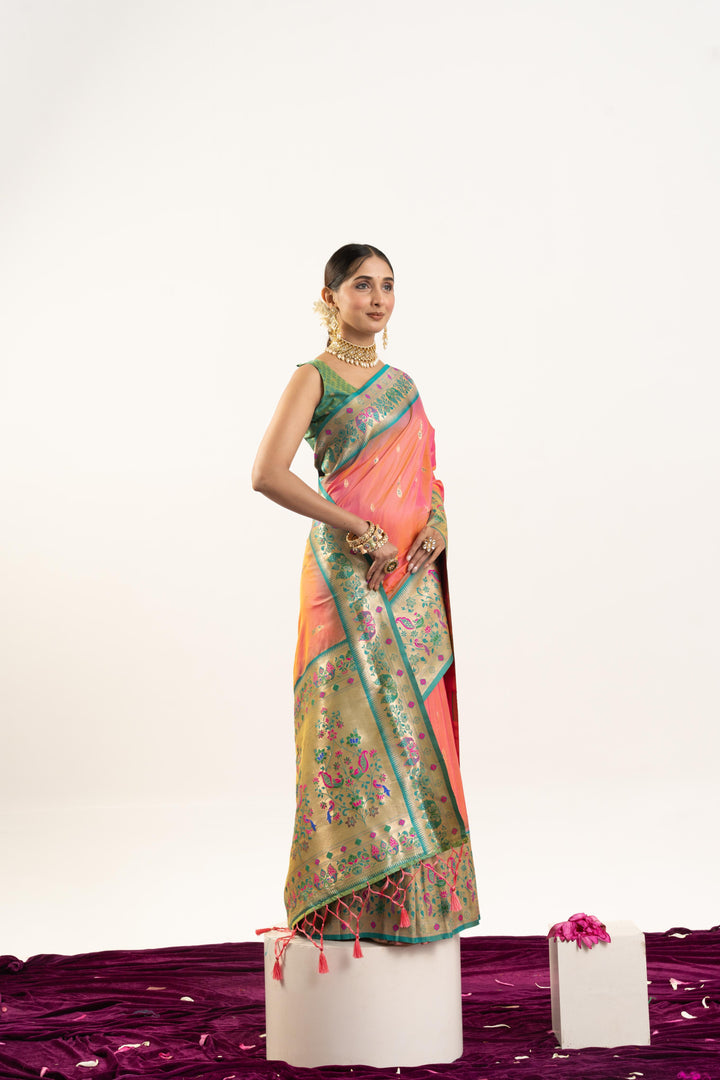 Premium Soft Muga Cotton Paithani Saree 101 - Peach