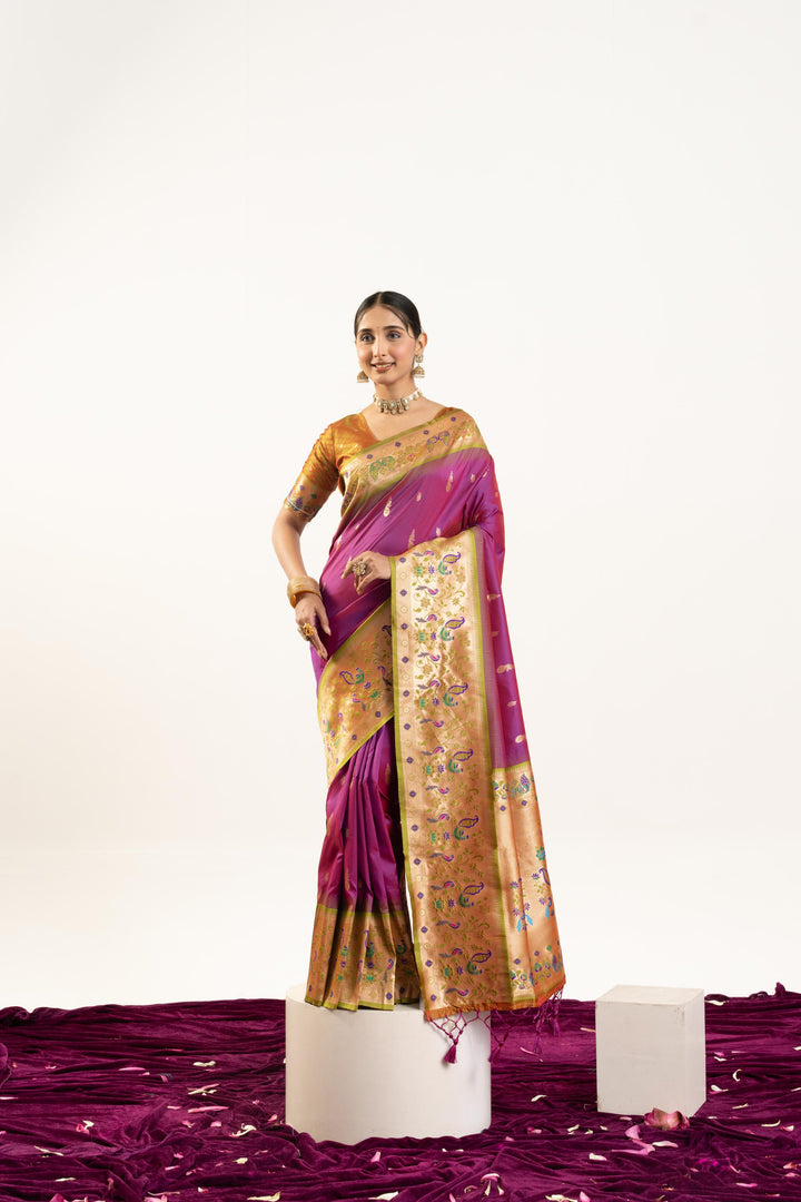Premium Soft Muga Cotton Paithani Saree 101 - Wine