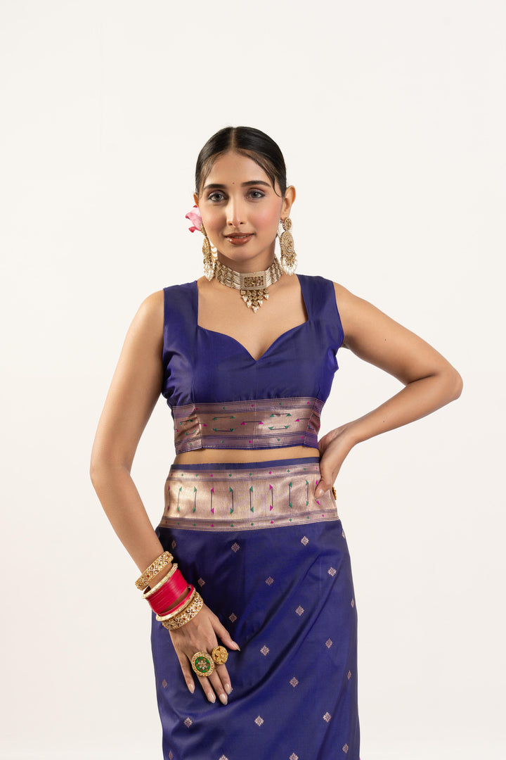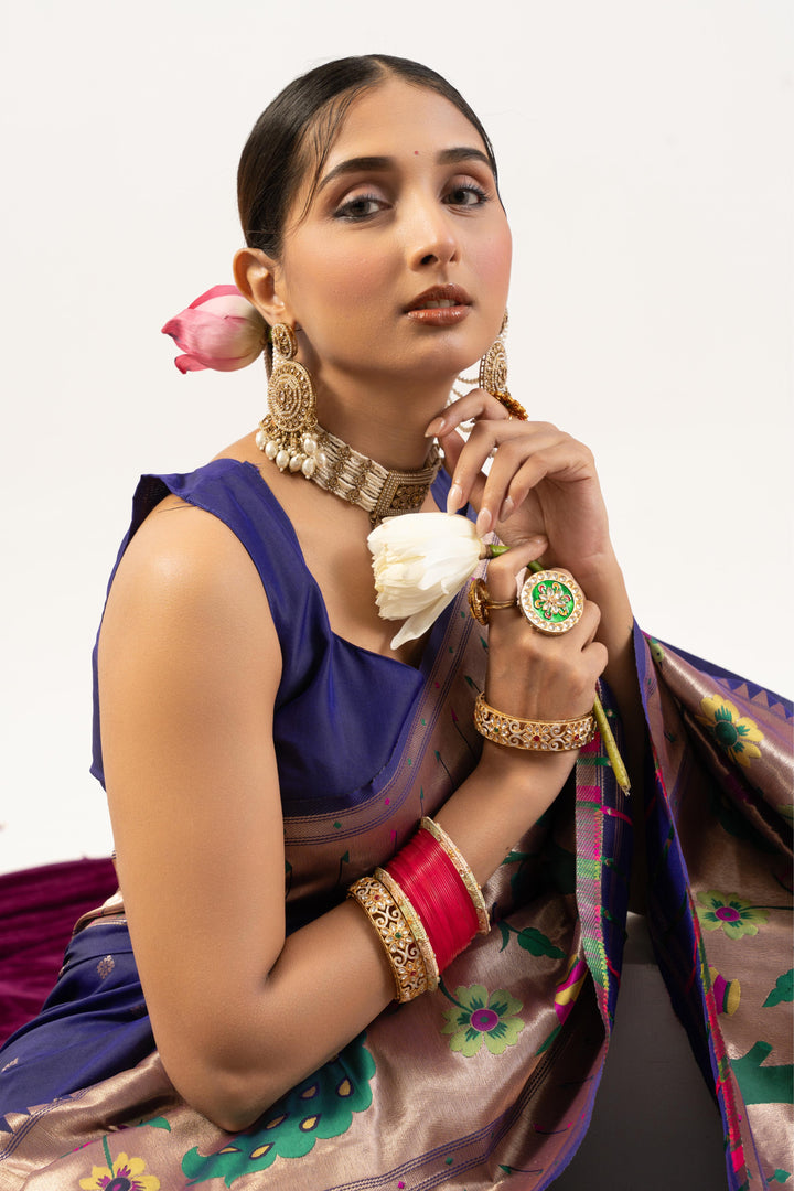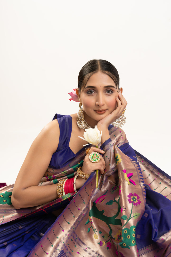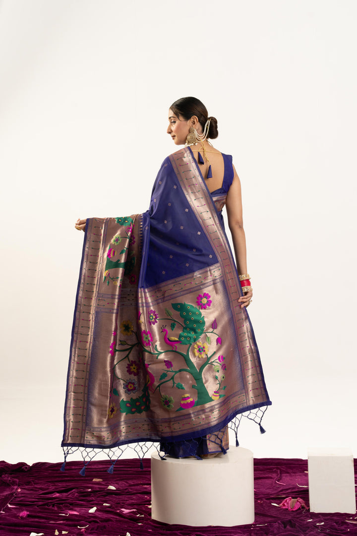Premium Soft Muga Cotton Paithani Saree 102 - Royal Blue