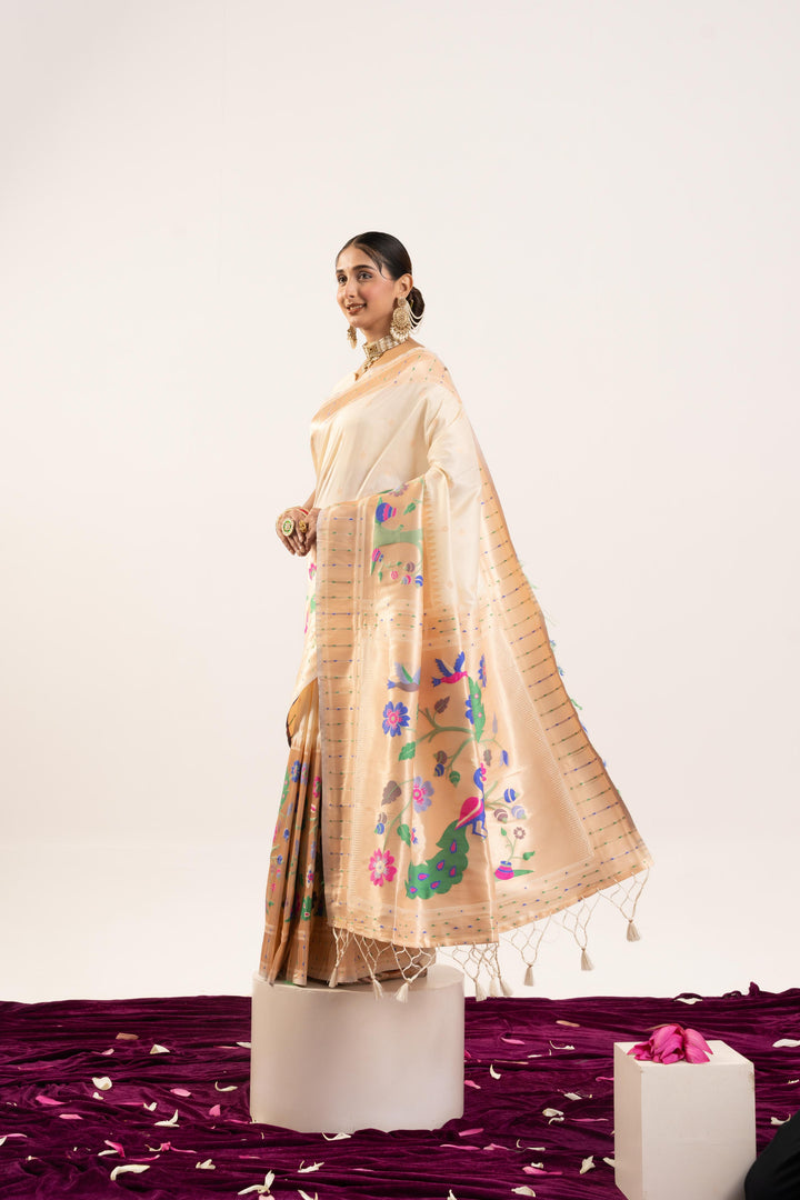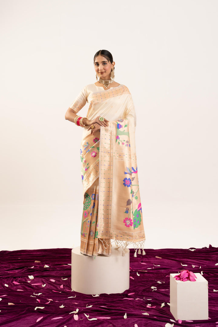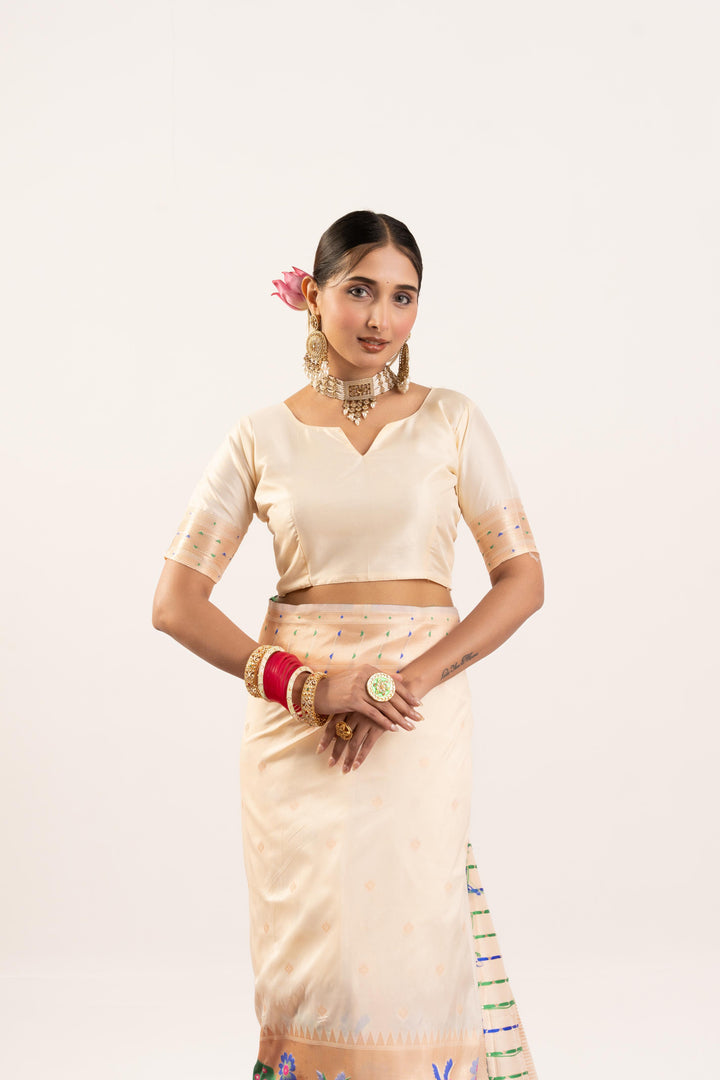 Premium Soft Muga Cotton Paithani Saree 102 - Regal White