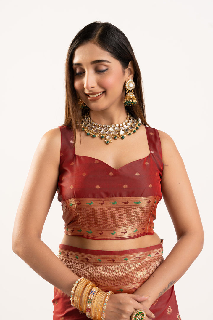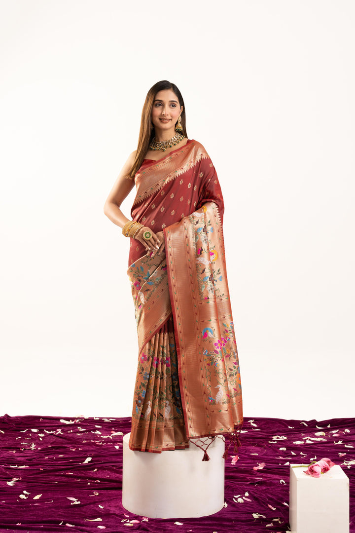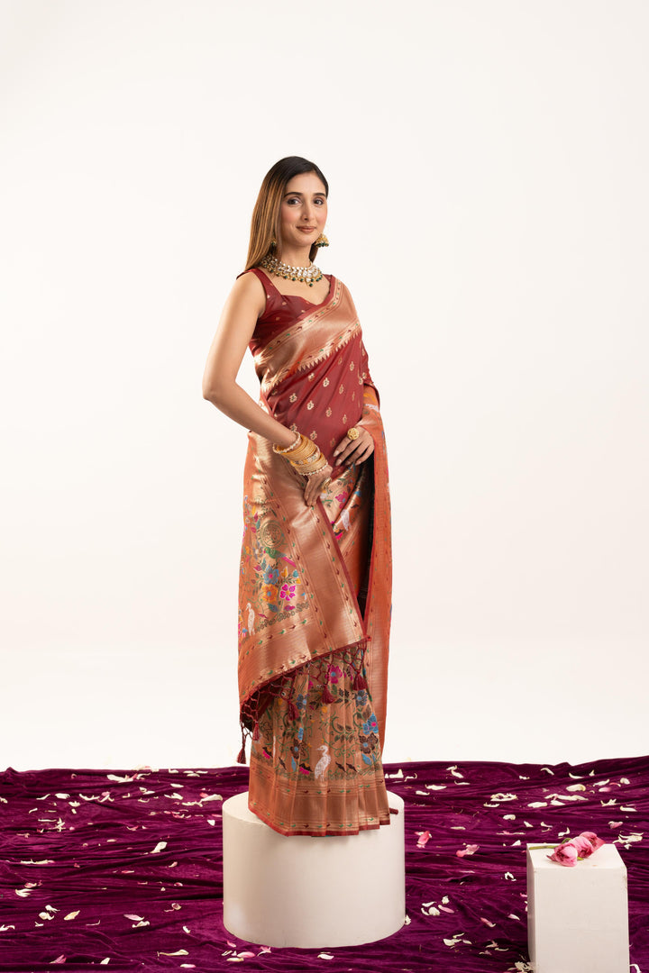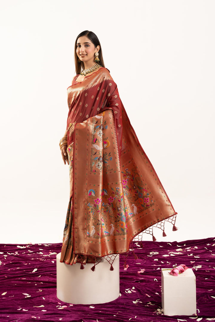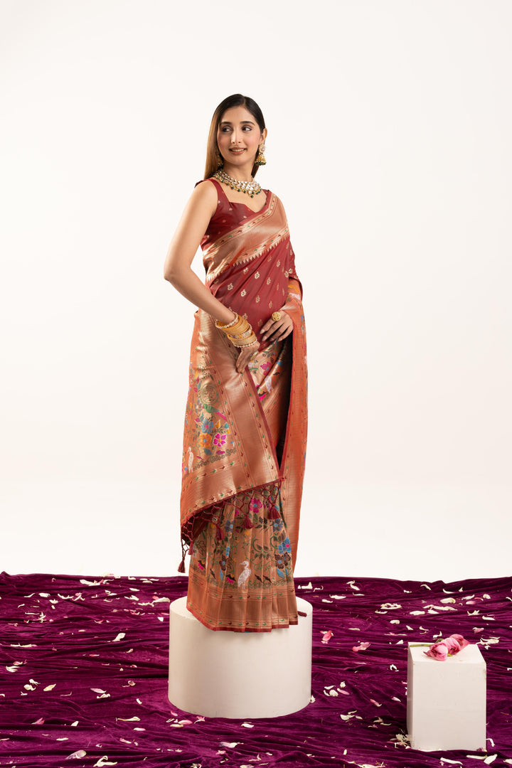Premium Soft Muga Cotton Paithani Saree 103 - Coffee
