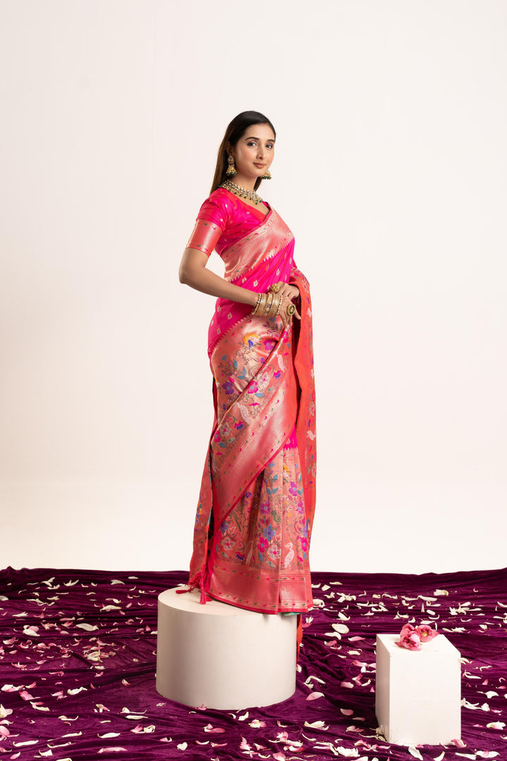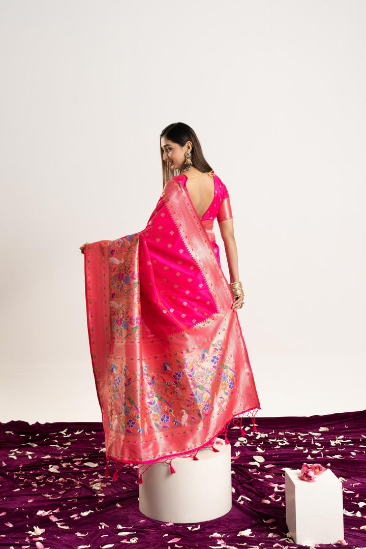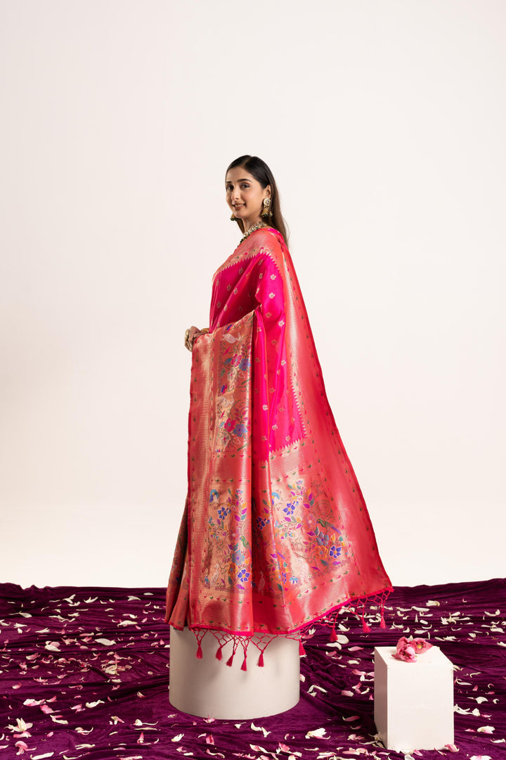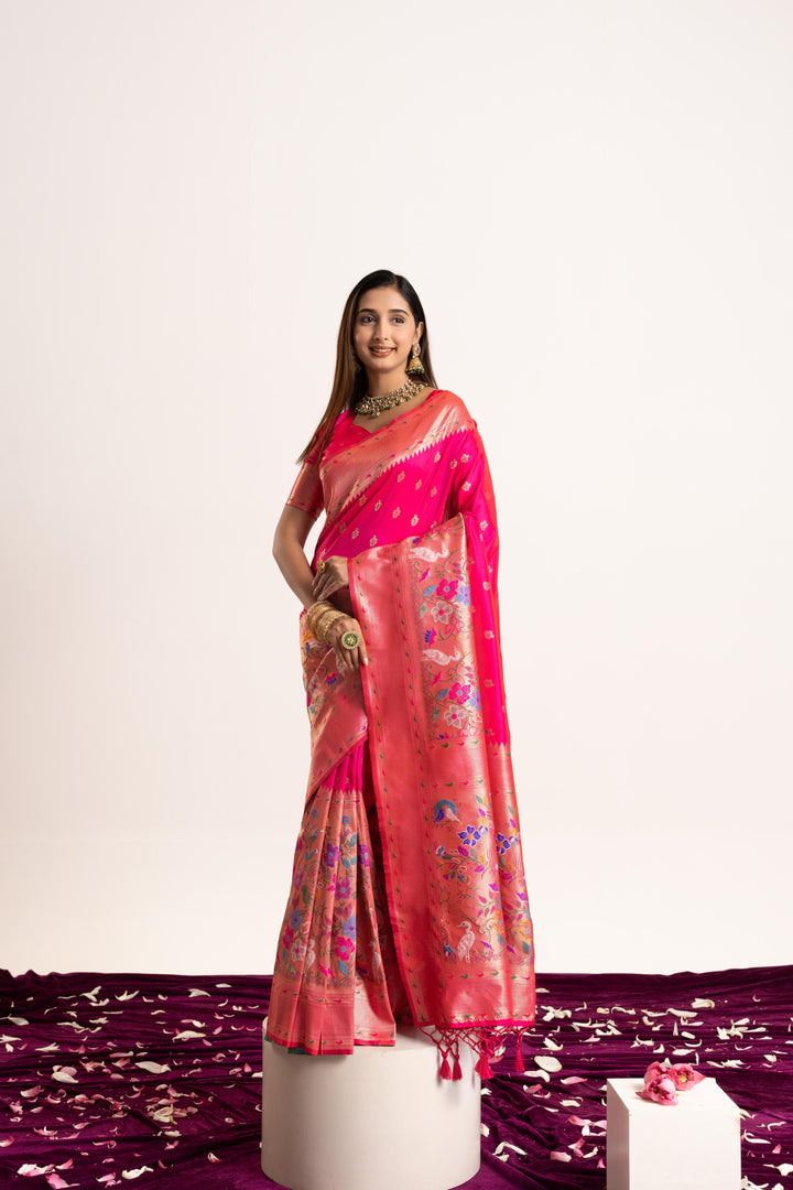 Premium Soft Muga Cotton Paithani Saree 103 - Pink