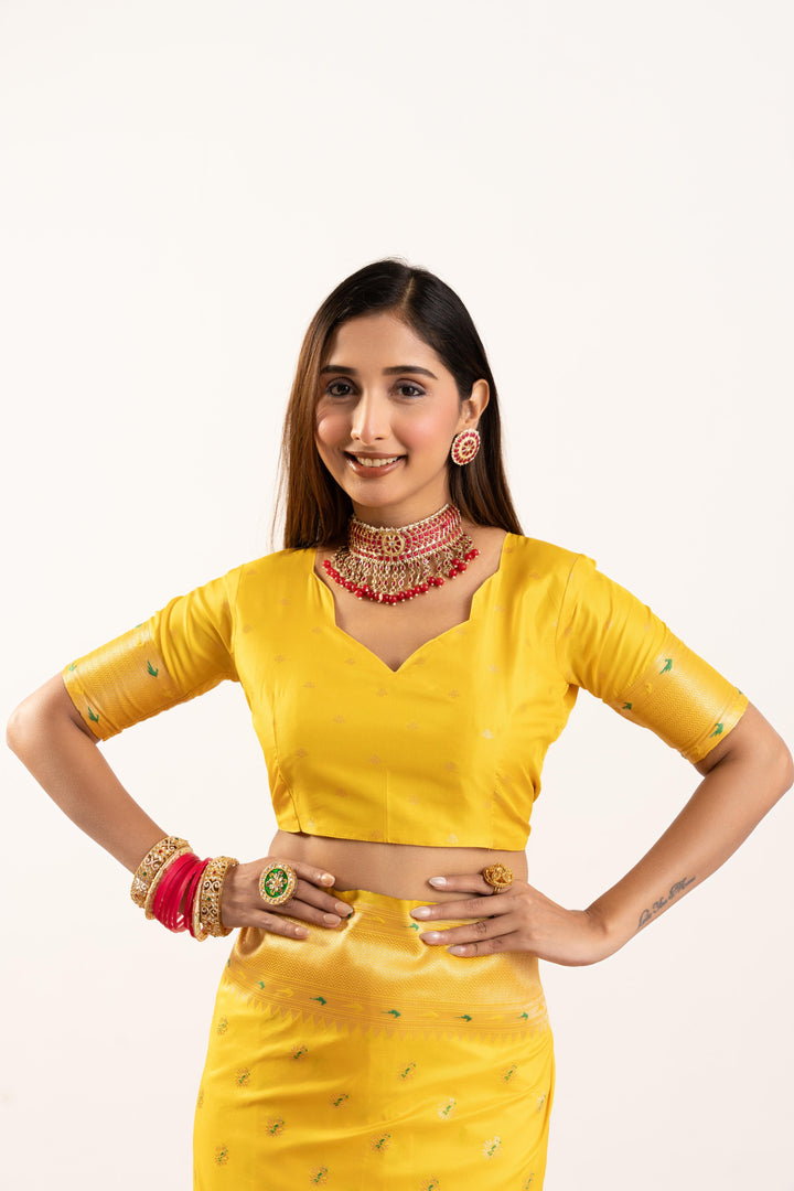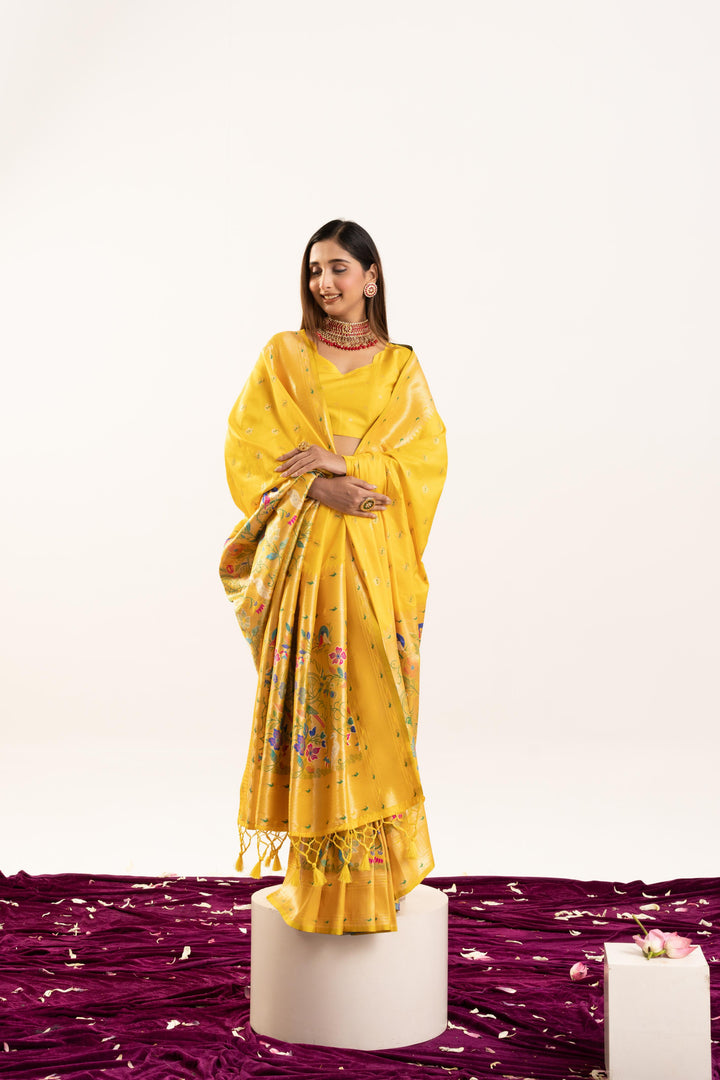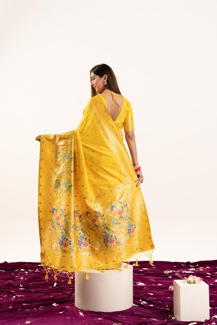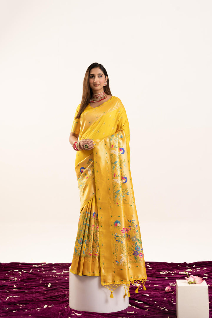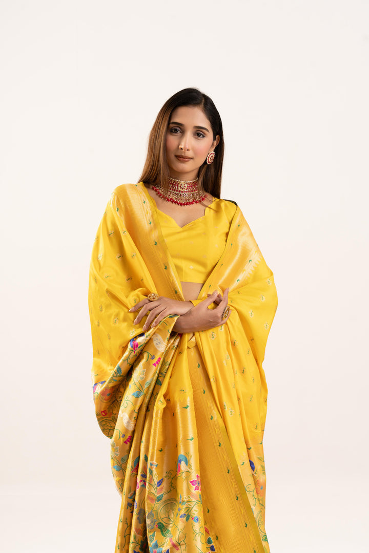 Premium Soft Muga Cotton Paithani Saree 103 - Yellow