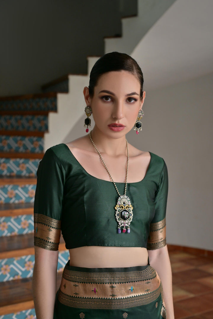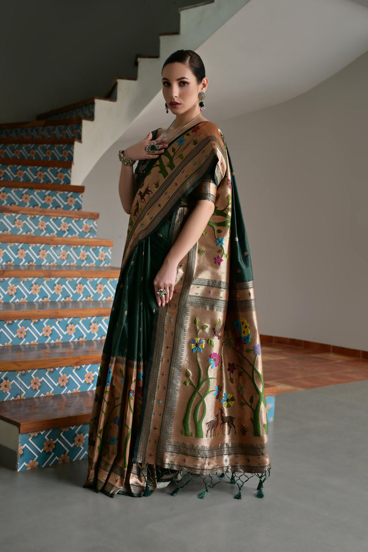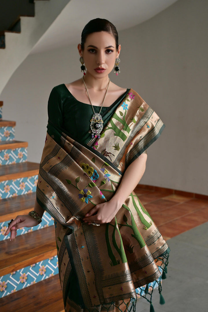 Premium Soft Muga Cotton Paithani Saree 104 - Dark Green