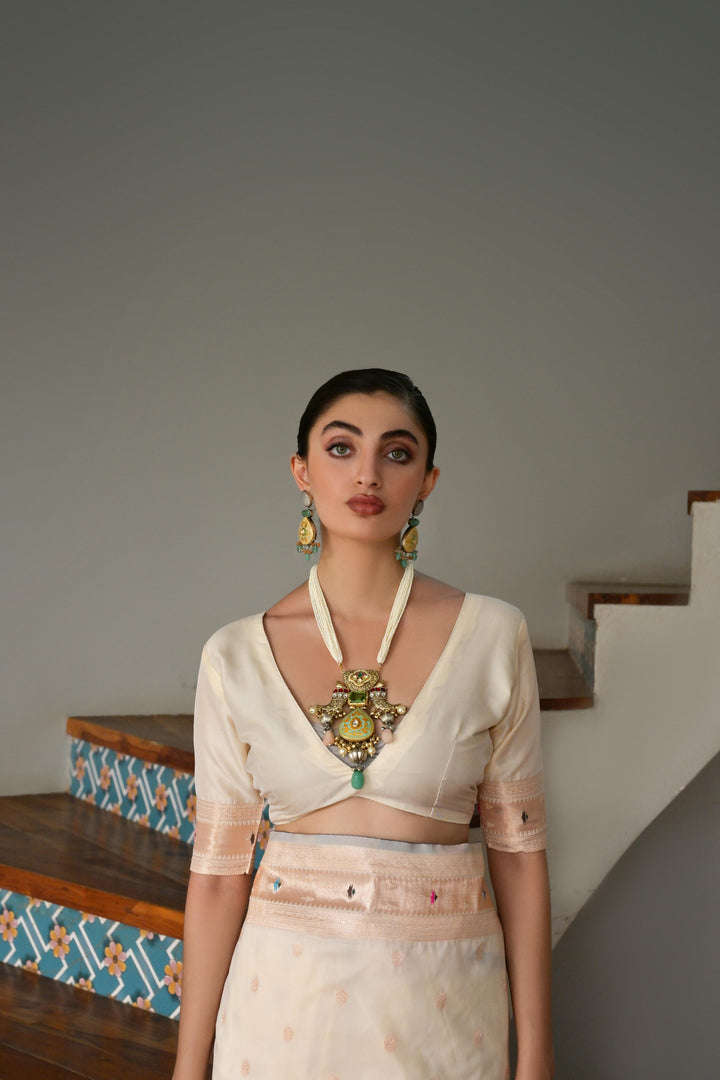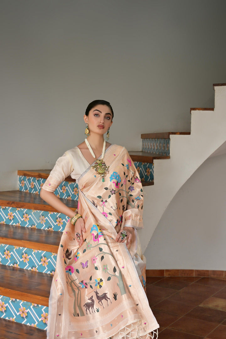 Premium Soft Muga Cotton Paithani Saree 104 - White