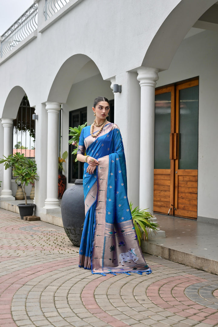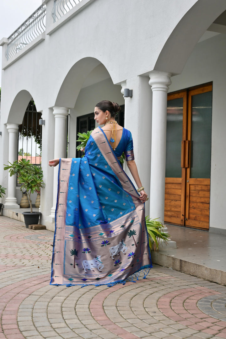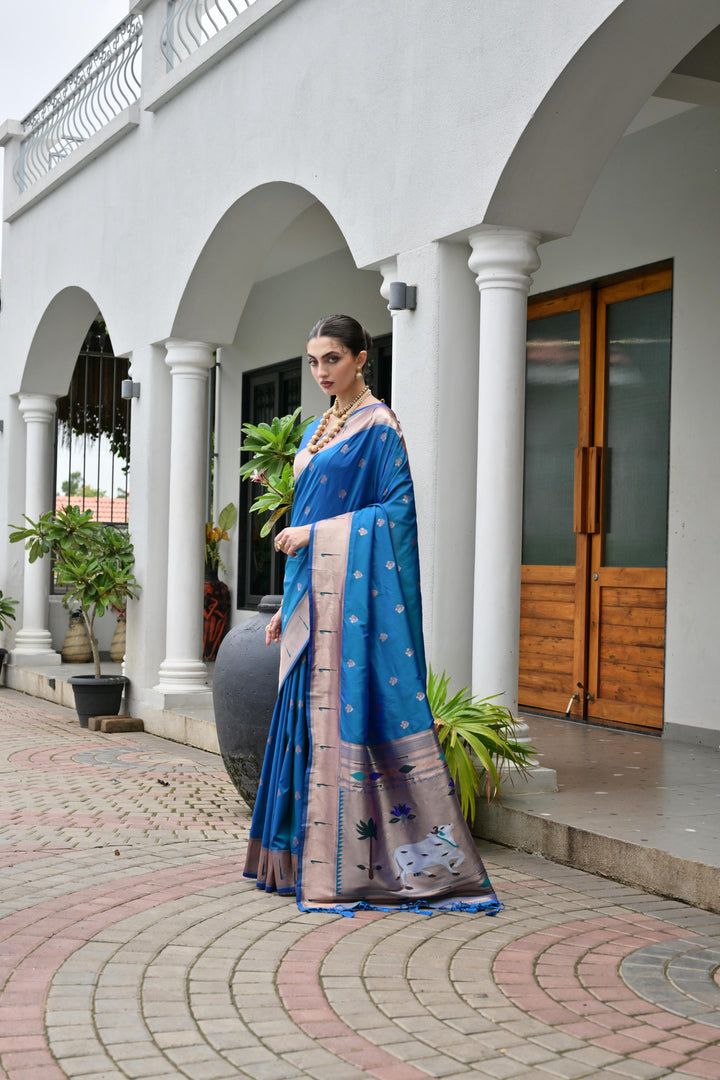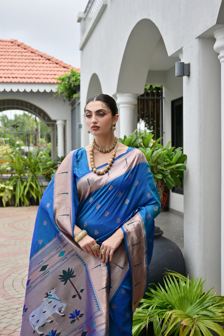Premium Soft Muga Cotton Paithani Saree 106 - Navy Blue