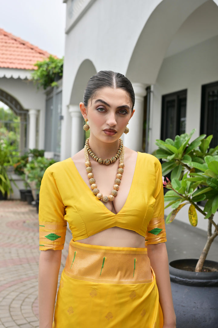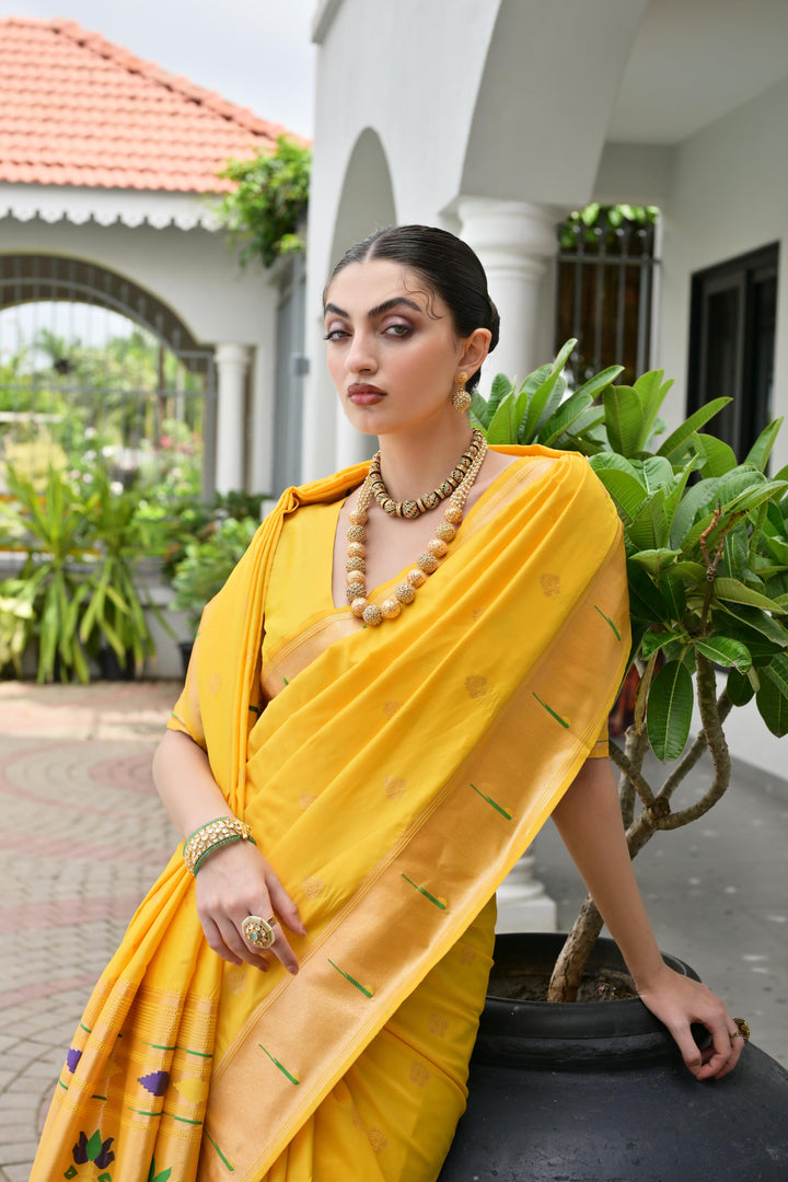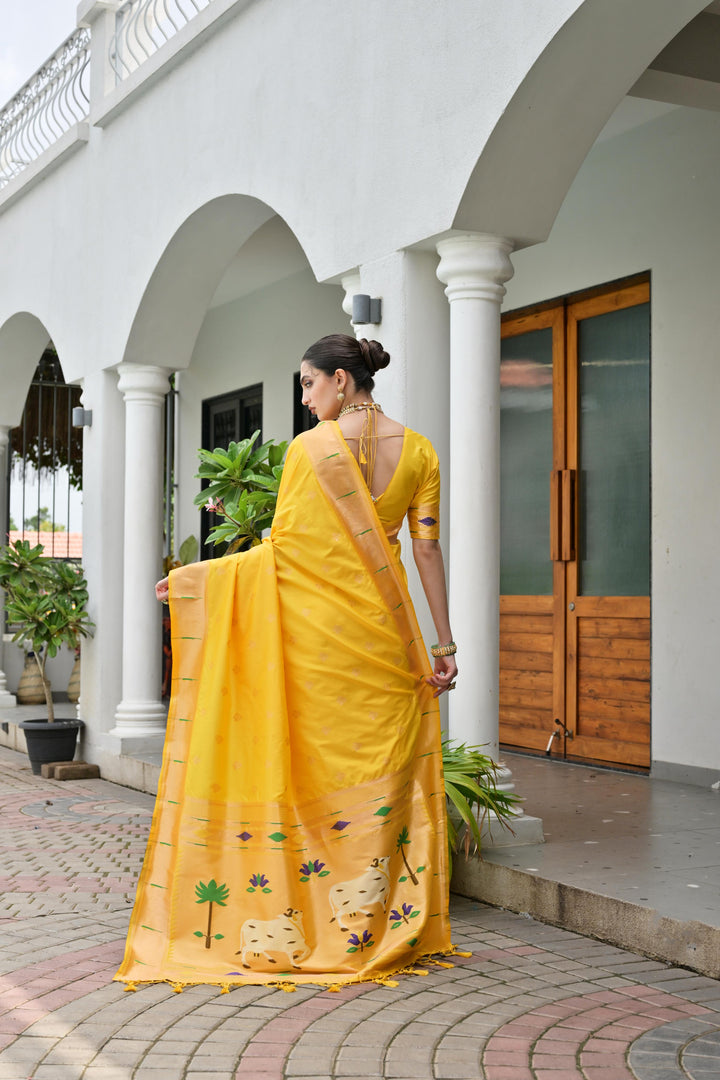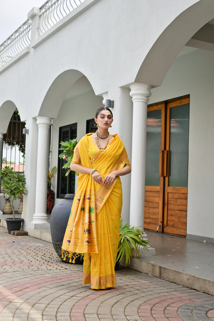 Premium Soft Muga Cotton Paithani Saree 106 - Yellow