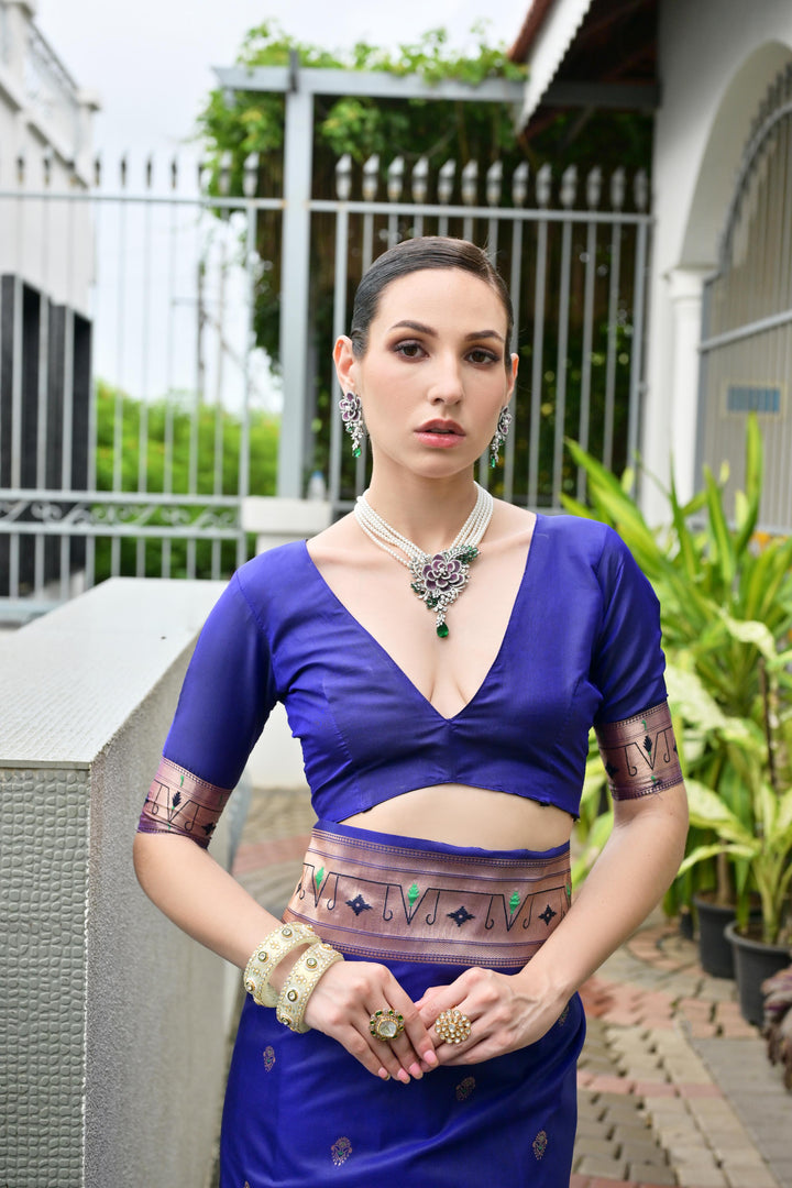 Premium Soft Muga Cotton Paithani Saree 107 - Blue