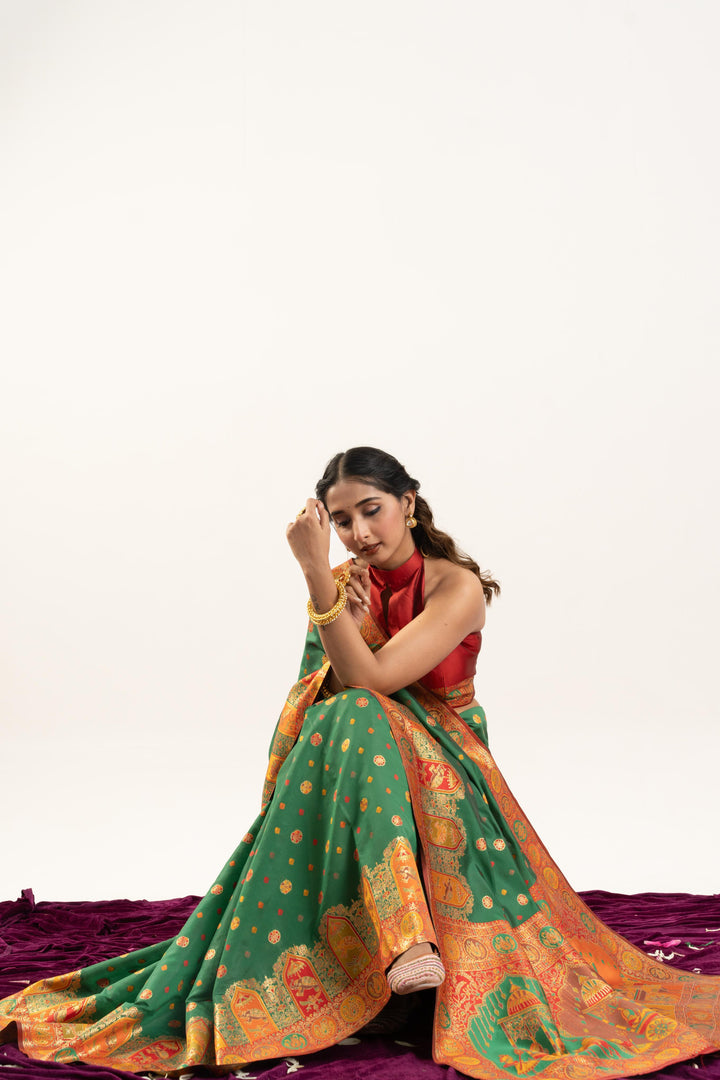 Soft Silk Saree With Darbar Theme - Parrot Green